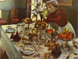 After a long career which began in timidly exploring painting, applying techniques learnt in Ecole des Arts Decoratifs and Ecole des Beaux-Arts in what was by the time of the execution of Dinner Table (1897) a fairly established style of roughly executed imagery with rapid and obvious paint work, thanks to the work of the impressionists, Matisse's soon took hold of his practice and began a career in search of pure colour.